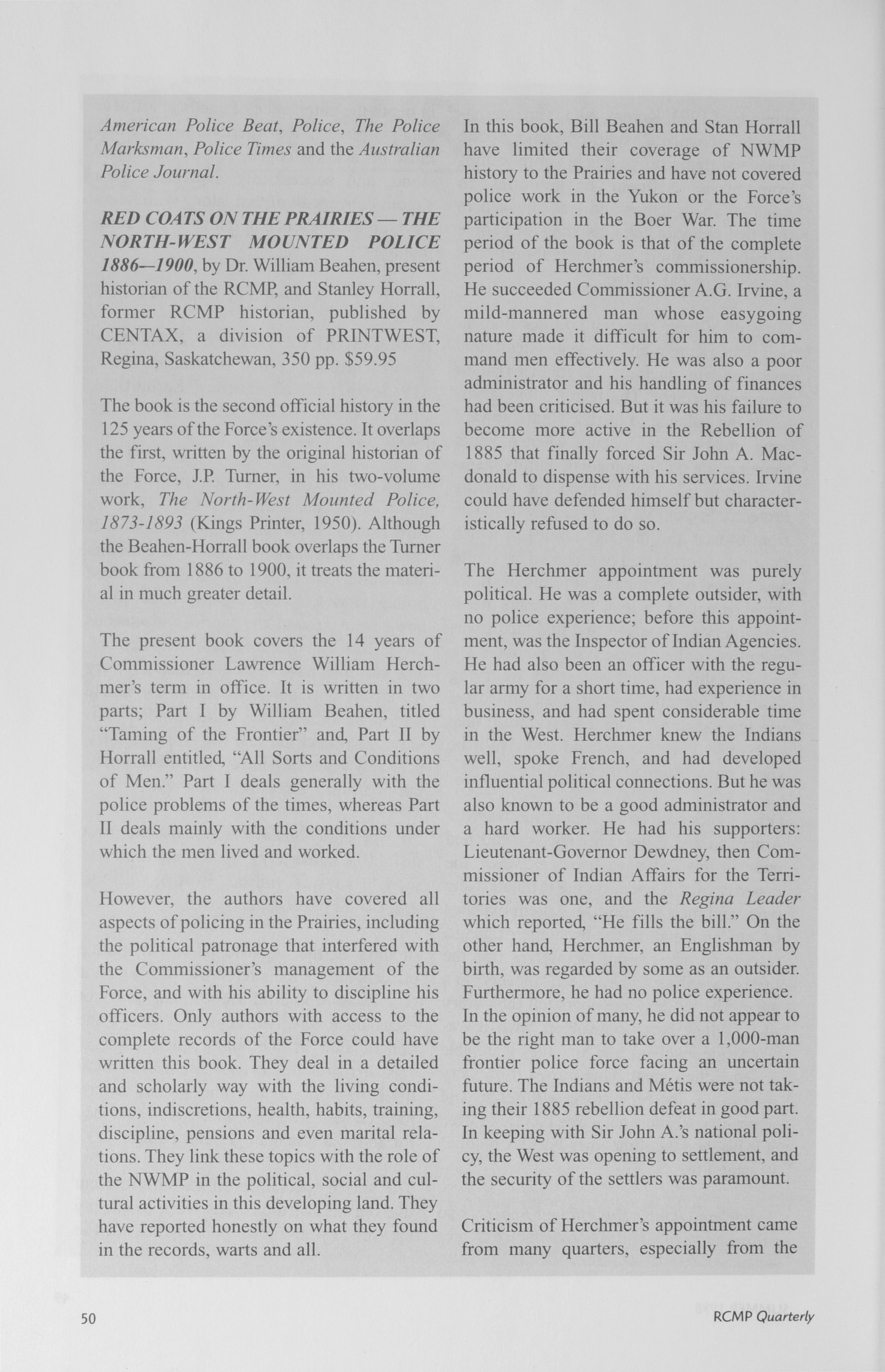 Part of the RCMP Quarterly Collection shared by the University of Regina, which includes "Royal Canadian Mounted Police quarterly", "RCMP quarterly = Revue trimestrielle de la GRC", and "The quarterly". - URL pérenne